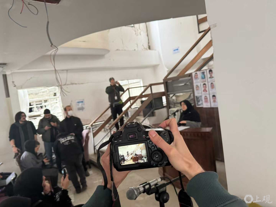 3月10日,参加在德黑兰一所废墟医院里举行的政府发言人新闻发布会,听着东西扑簌簌往下掉,心惊肉跳。